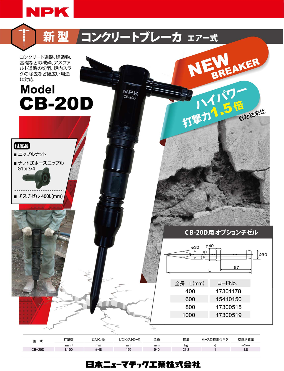 混凝土斷路器 CB-20D,我們為流行的20kg級增加了高功率類型。